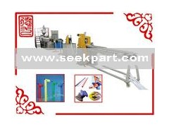 The raw material of EPE foam pipe extrusion line is low density polyethylene resin which is fed into the extruder with screw L/D 55:1 by automatic loading equipment. Fill with the anti-shrinking agent and foaming agent under high pressure. After cooling, extruding, it can produce the foam pipe.